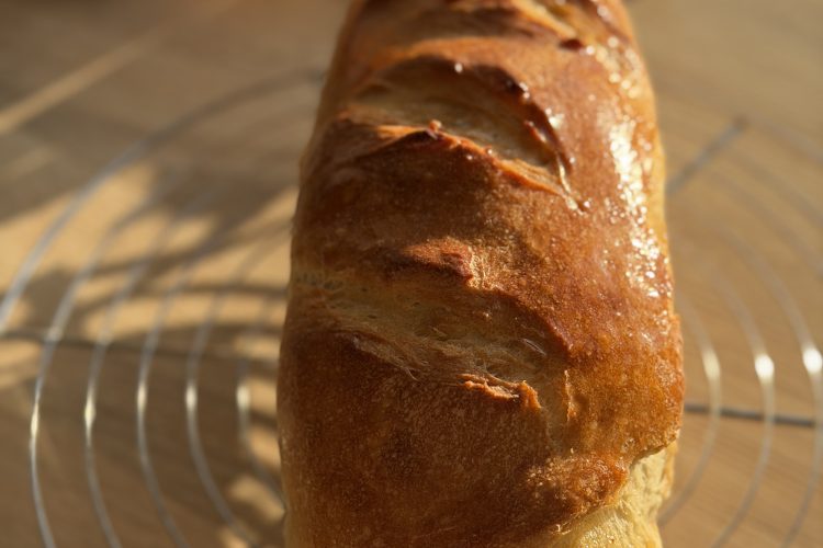 Preheat your oven to 275°C and place a steam tray inside. Bake the bread for 20 minutes with the steam tray then remove it and bake for a further 30 minutes.